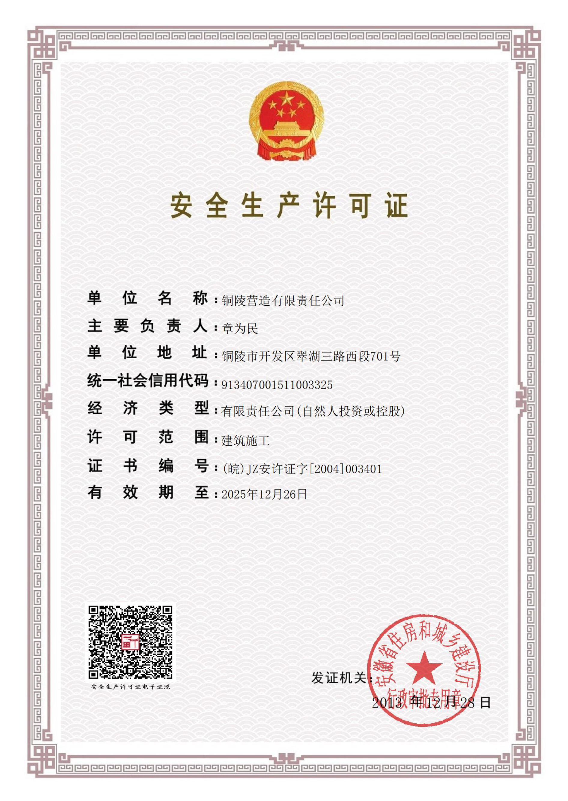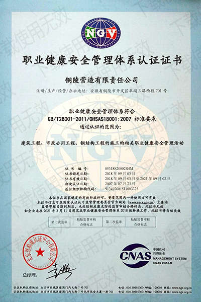 銅陵營造有限責任公司是國家住建部核準的房屋建筑總承包一級企業。2006年7月,企業二次改制為民營企業,并更名為“銅陵營造有限責任公司”。目前,公司擁有房建施工總承包、市政公用工程總承包、鋼結構專業工程承包、建筑裝修裝飾專業工程承包四項壹級資質,機電安裝、起重設備安裝、建筑幕墻三項貳級資質,地基與基礎一項叁級資質。2008年通過北京恩格威ISO9001、ISO14001和OHSAS18001“三合一”體系認證。